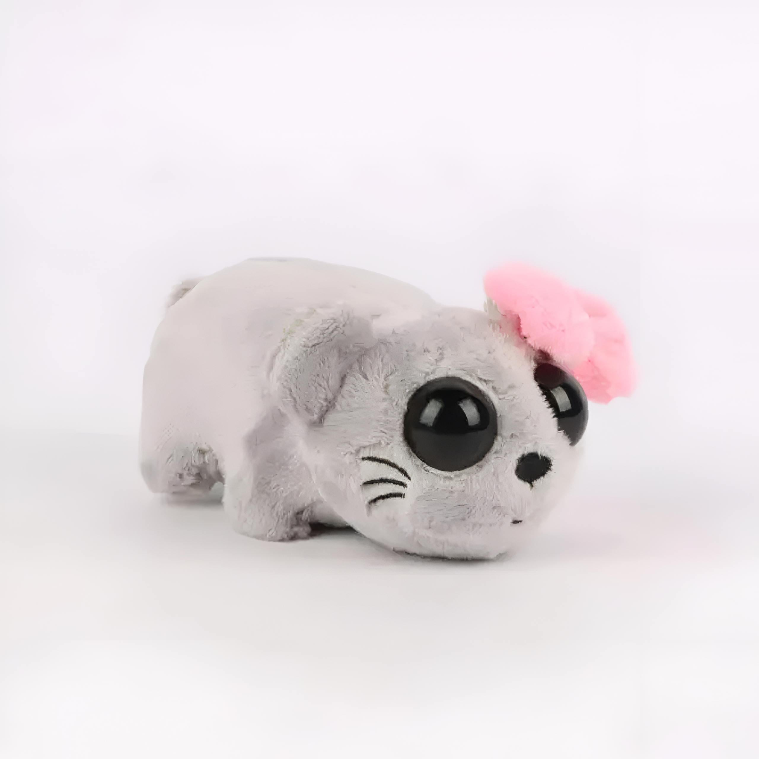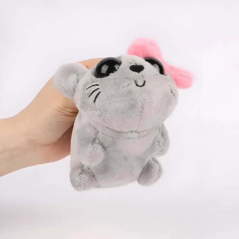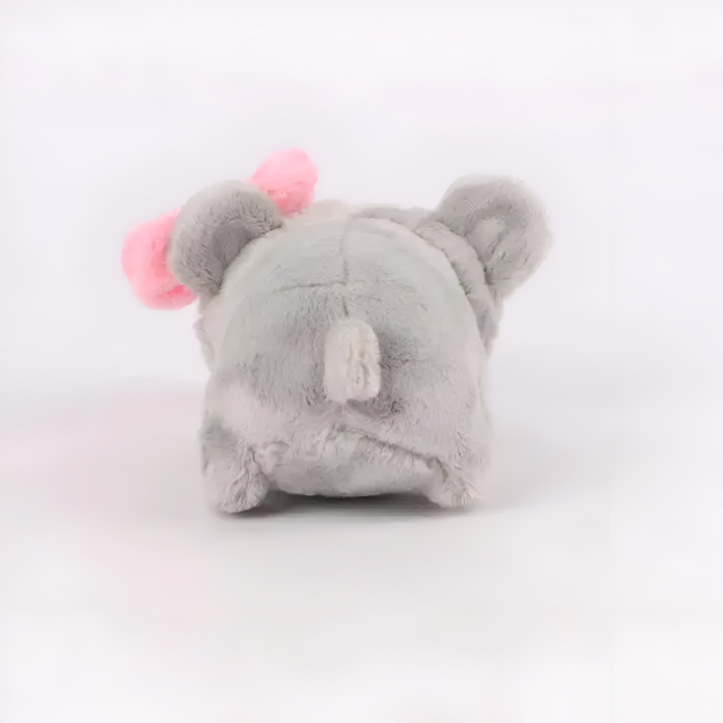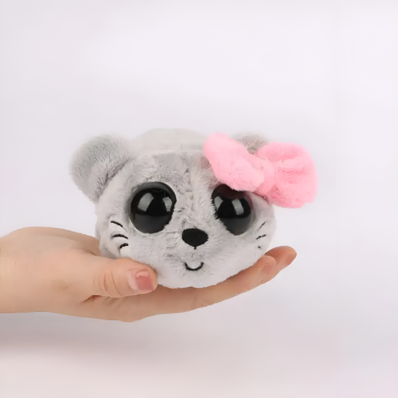 Ten malutki pluszaczek to prawdziwa słodycz, która zachwyci każdego! Wykonany z mięciutkiego, szarego pluszu, ma śliczne, duże oczka i malutką różową kokardkę na główce, która dodaje mu jeszcze więcej uroku. Wygląda jak malutki zwierzaczek, które aż prosi się o przytulanie! Ale to nie wszystko – ten uroczy pluszaczek potrafi wydawać popularny dźwięk, który od razu wywoła uśmiech na twarzy każdego, kto go usłyszy. Idealny do tulenia, zabawy i towarzyszenia na co dzień!
